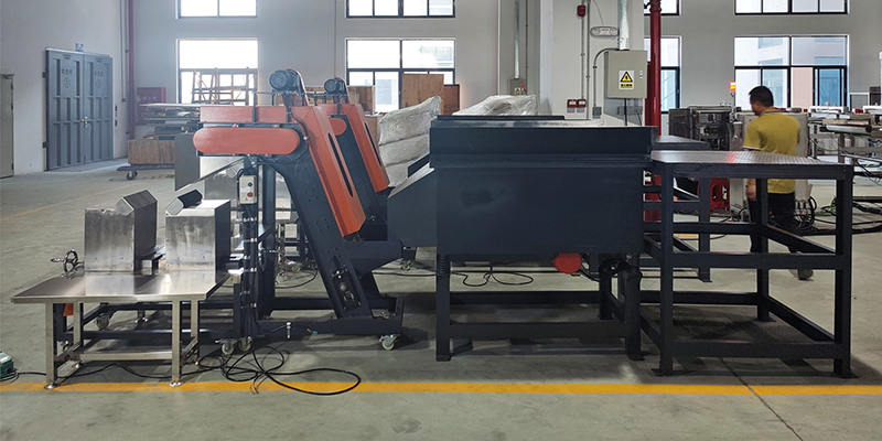 Automated Feeding: Vibrating feeder specially made for long screws.