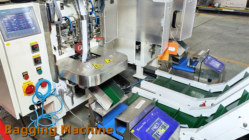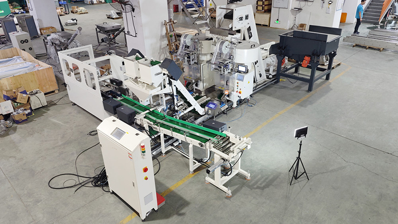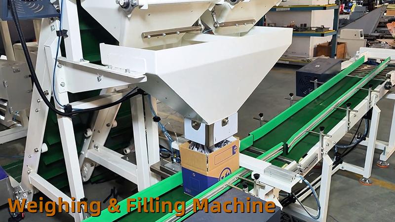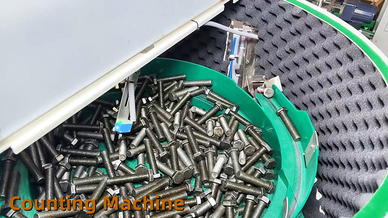This system (Auto fastener bag in carton packing system) is especially for large size hardware fasteners (M8-M20) packing. It can realize automatically feeding, conveying, counting, bagging, weighing and filling bags into carton. Which packing range can be 5-50kg per carton.