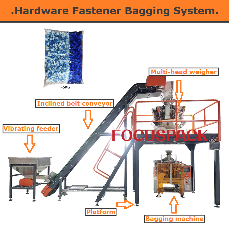 This system(automatic bagging system) can realize automatically feeding, conveying, weighing, filling and packing fastener into bags. It is suitable for a wide range of fasteners such as screw, nut, bolt, washer, nail, button, etc.